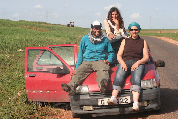 So there we were, four Westerners dragging a car in a very third world way. The girls responded marvellously and that is one thing I have to say for rainbow people. They don't complain much, adapt easily and can still smile through it all. Just as well, because before long we were stranded on the side of the road without lights in the middle of the night and still not starting properly. At the mercy of some Moroccans at this cafe, we sat resignedly inside the car, trying hard to just keep positive at this early stage of the trip. I even thought I saw fearless Anka frown with frustration. Help came soon, though, some of the people outside responding to our plight and after checking a few things found one of the fuses to be burnt out, meaning that the ignition plus the lights were impaired. With a small wire we were on our way, in awe that such a small thing could bring to a halt something so big. We stopped the first night at a rivermouth in Kenitra, the girls just sleeping their first night in the North African country outside on the river's side while I, cowardly expecting a swarm of masked pillaging midnight raiders, squashed in the backseat of the Renault Clio. In the morning a cool guy with a little overgrown rat of a dog, invited us to his house, where we ate some food and got some of the local produce. Then we moved on south to Safi where cool couchsurfer guy Hicham was waiting for us at his parents' abode.