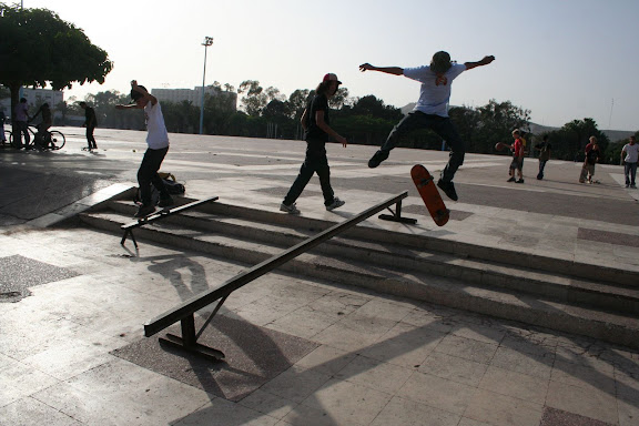 “Err... no,” was our answer as we wrestled with a hunger garnered from not eating all day as we sped to our destination before nightfall. Having realised we were quite innocent they let us catch a bite before becoming the first tourists to sleep in that town for three years. I even managed a great conversation with an interesting educated policeman with a perfect English accent at his lonely post at the entry to this town. We spent the night by the post and then carried on north through some more villages and the undertaking further off-roading through a wondrous valley as the sun set on us lighting the peaks around us in a heart-warming red glow. We fought confusion again and finally arrived at the road we were looking for proceeding through the mountains to the tourist town of Tafrout and then northwest along the ridges of the anti-Atlas toward Agadir. There, we spent some good times with Soufi and his skater friends, as well as my brother who was in the area before heading north alone with my backpack and surfboard tucked under my arm to Imsouanne, a beautiful fishing enclave with some of the most perfect longboard waves there is. Having arrived at this paradisical still under-exploited spot I was walking around in the carpark and was greeted by an Austrian guy with a full-size motor-caravan. After smoking together and getting annihilated at chess he invited me to sleep there where I hung out for a week in the end, passing away the hours catching perfect long rides on borrowed longboards and eating donated sardines from our pro-rainbow Mohamed in his tiny beachside restaurant. All too soon it was time to leave and Europe beckoned with an opportunity to get some writing work with my cousin on a website. I got a trip to Casablanca with some cool French couple and then headed to Rabat where I stayed with an American guy who had managed to go, even out with a Moroccan princess before deciding their weakness for coke wasn't really his thing. We went to a wild diplomatic pool party with other foreigners and prostitutes hanging around innocuously and then spent a day chilling before catching a coach to Tangiers from where I took the ferry straight home to Gibraltar.